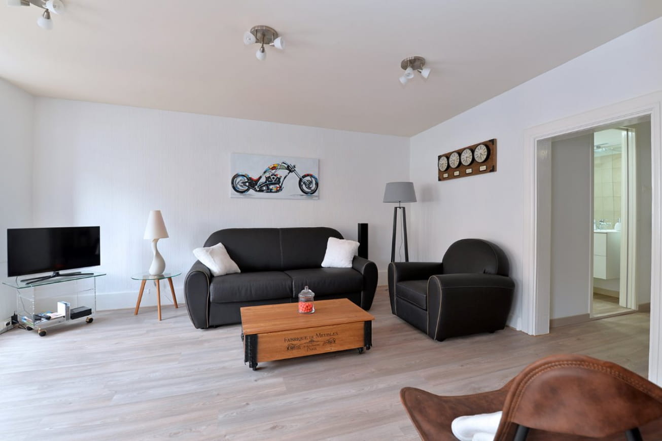 – Ruime, lichte woonkamer met eethoek, woonkamer met slaapbank van 140 x 200 cm (BULTEX-matras) voor 2 volwassenen, tv met eigen box en Wi-Fi-toegang.