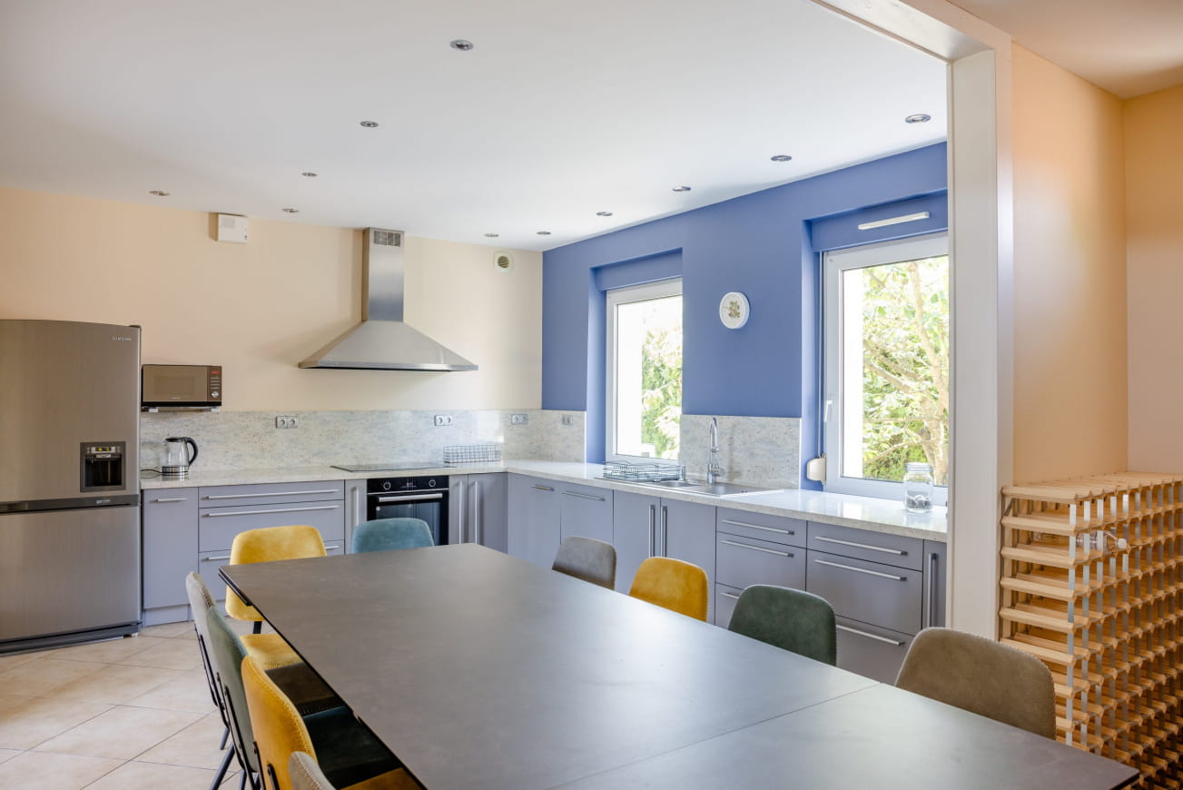 Deze comfortabele gîte is geschikt voor maximaal 15 personen. Warm en vriendelijk, ontworpen om je thuis te voelen, omringd door je geliefden. Jacuzzi op terras