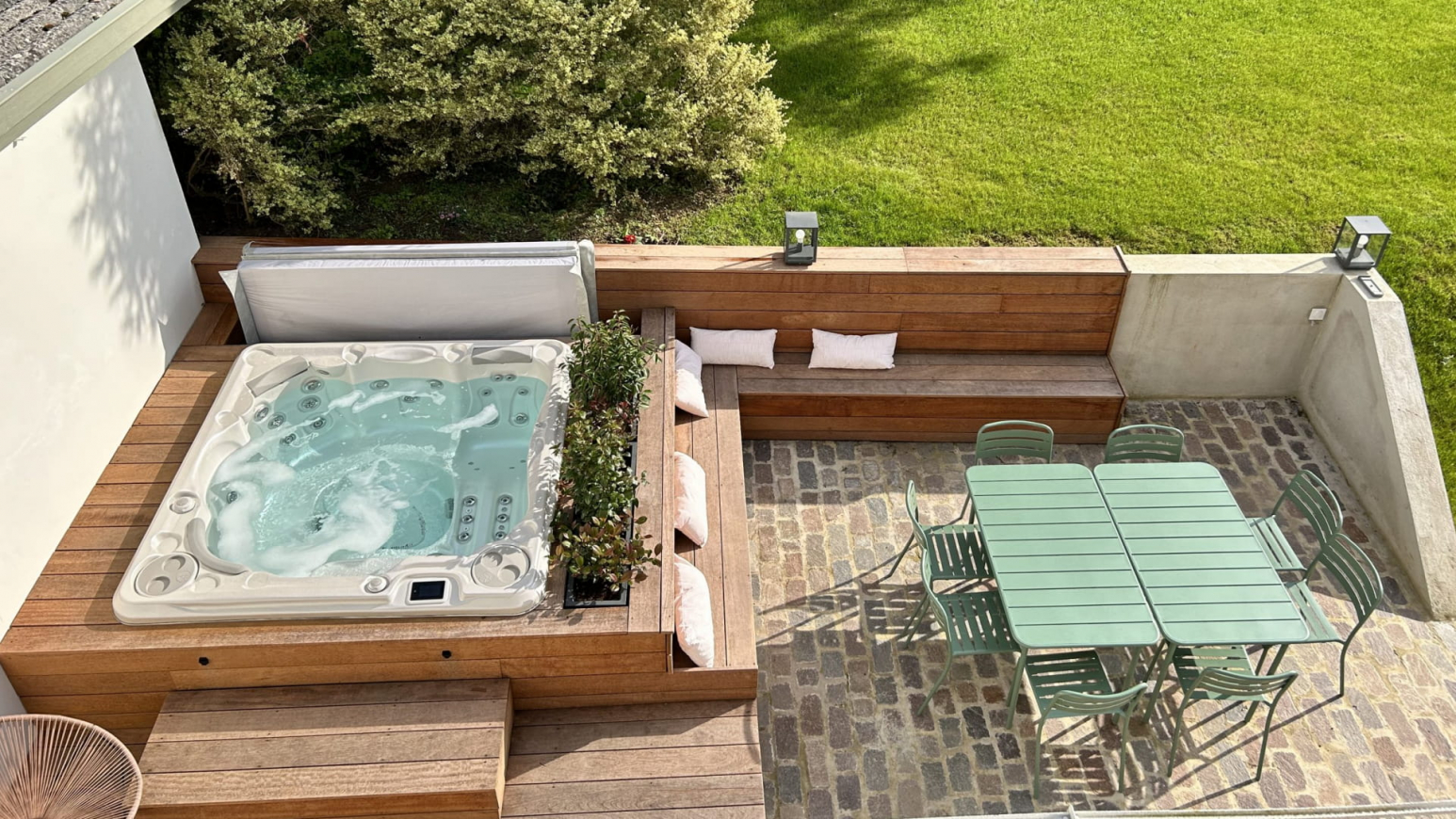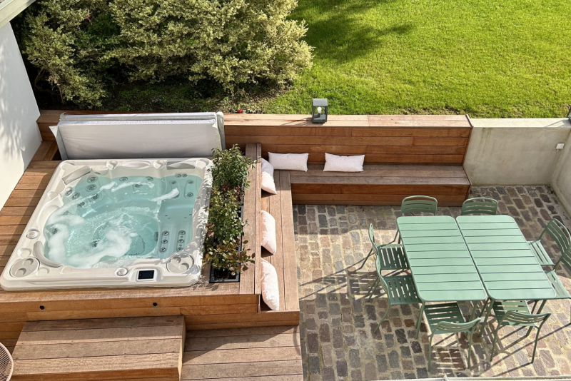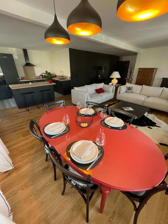 Verblijf 2 nachten of langer in het luxe Le Geai appartement (90 m2) met twee slaapkamers en twee badkamers voor 4 personen. Je hebt toegang tot de spa voor momenten van ontspanning, en buiten leent de tuin zich perfect voor gezellige momenten rond een barbecue. Voor avonturiers zijn er genoeg fiets- en wandelpaden in de omgeving.