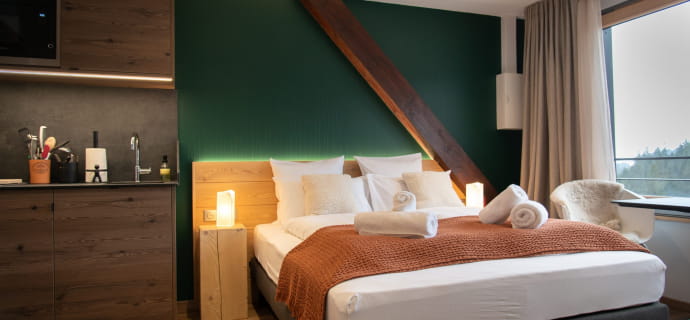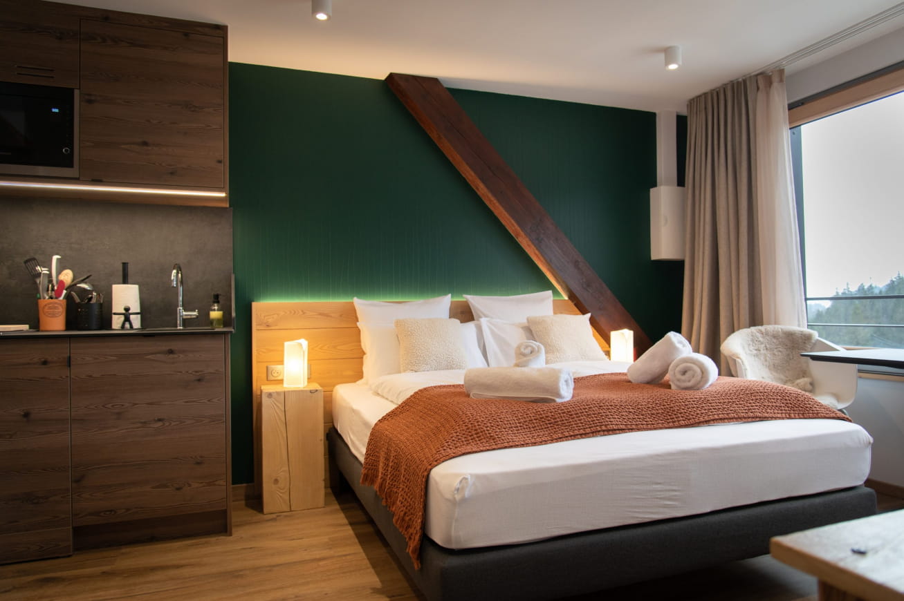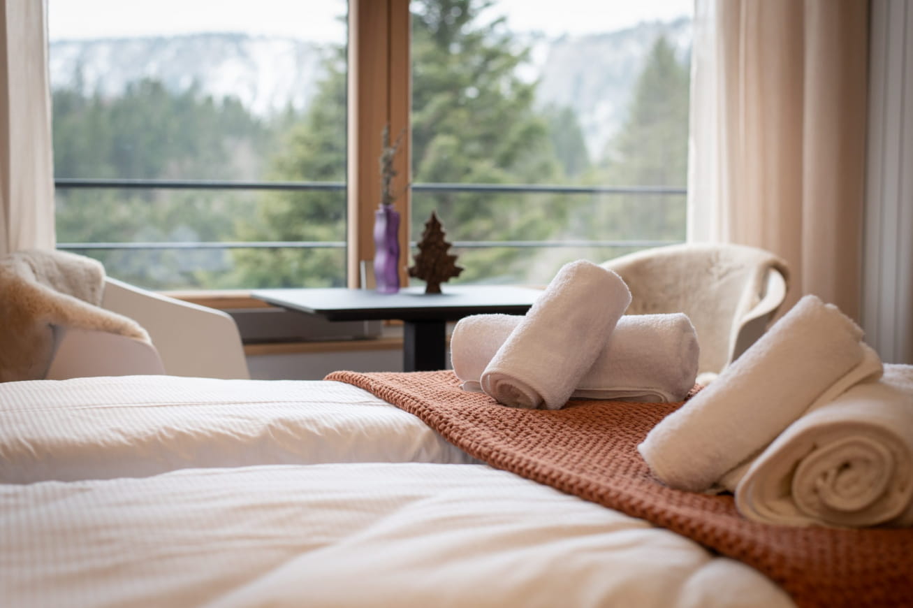 Nieuw in 2025: De gemeenschappelijke sauna: dompel jezelf onder in een warme, intieme sfeer en geniet van een unieke ontspanningservaring met een adembenemend uitzicht op de bergen.