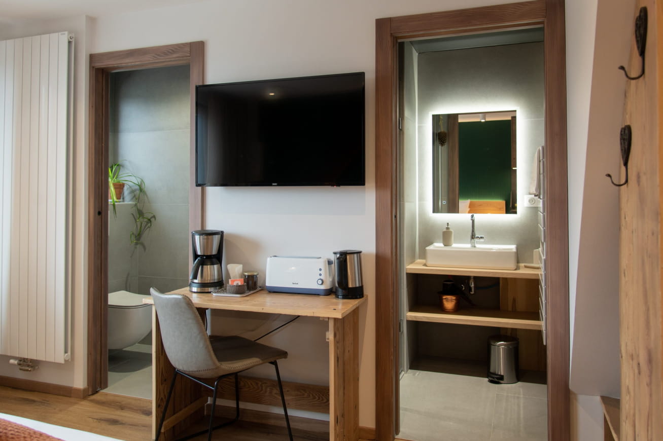 De herberg wordt geprezen om zijn superieure kwaliteit en laat je genieten van een moment van cocooning in de Elzas. Deze warme en gezellige studio van 18 m² heeft een queensize tweepersoonsbed, een volledig uitgeruste keuken en een badkamer met een inloopdouche. Er is een slaapgedeelte gecreëerd in deze gezellige cocon voor uw privacy. Geniet van de schoonheid van de natuur door het grote raam dat uitkijkt op de omliggende vallei!