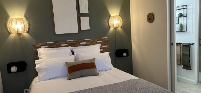 Het appartement bestaat uit een woonkamer met een volledig uitgeruste keuken en een comfortabele tv-lounge. Er is een slaapkamer met een bureauhoek, een 160×200 cm Queen-size bed, een eigen doucheruimte met inloopdouche en een apart toilet. Het zorgvuldig aangelegde terras heeft een zithoek, ligstoelen en een plancha. Alles wat je nodig hebt voor een aangenaam, ontspannen verblijf!