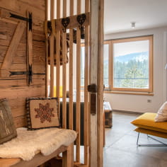 Nieuw in 2025: De gedeelde sauna: dompel jezelf onder in een warme, intieme sfeer en geniet van een unieke ontspanningservaring met een adembenemend uitzicht op de bergen.