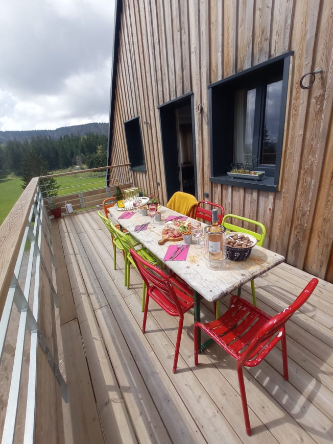 - Een terras met een uitzonderlijk uitzicht op de bergen van de Vogezen in de Elzas