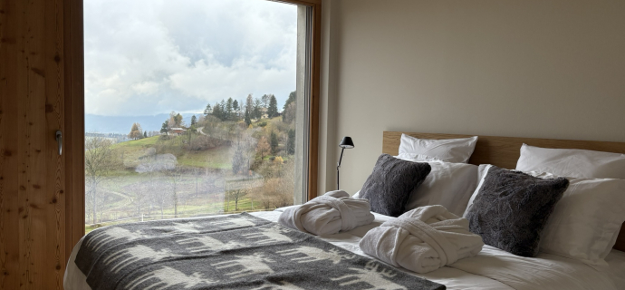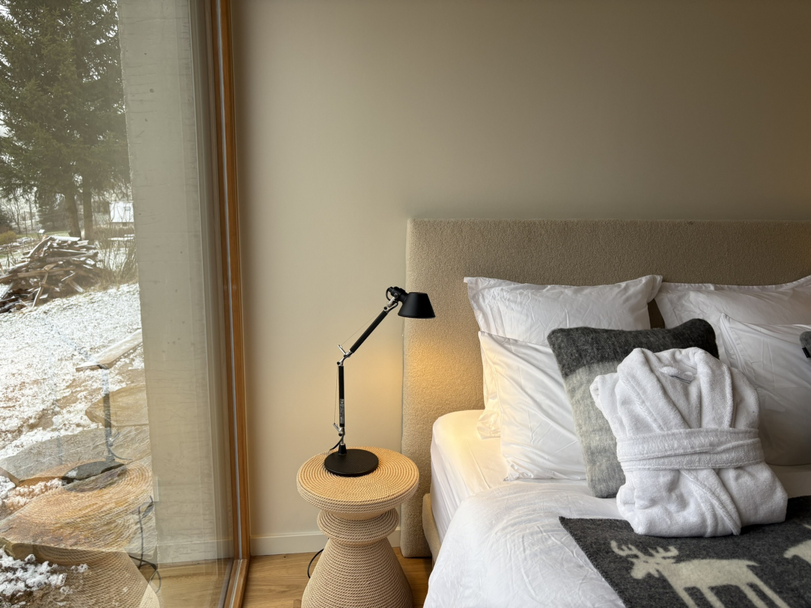 Laat je verleiden door de enorme erker van 9 meter, die je onderdompelt in een adembenemend panoramisch uitzicht op de Vogezen, met niets ertussen. Overdag of ‘s nachts, dit exclusieve kader zal liefhebbers van grandioze landschappen en astronomie bekoren. Binnen combineert de chalet de charme van hout en natuurlijke materialen met een eigentijdse inrichting en luxe faciliteiten. Er wacht een privésauna op je voor een wellnesspauze na een dag wandelen of skiën.