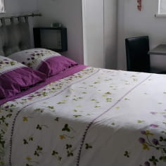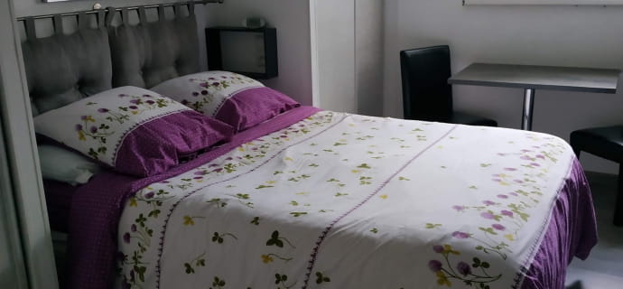 De oppervlakte van de gîte is 45 m2 , de slaapkamer heeft een bed met 2 matrassen op een bodem van 180 , elk met een eigen dekbed , veel bergruimte .