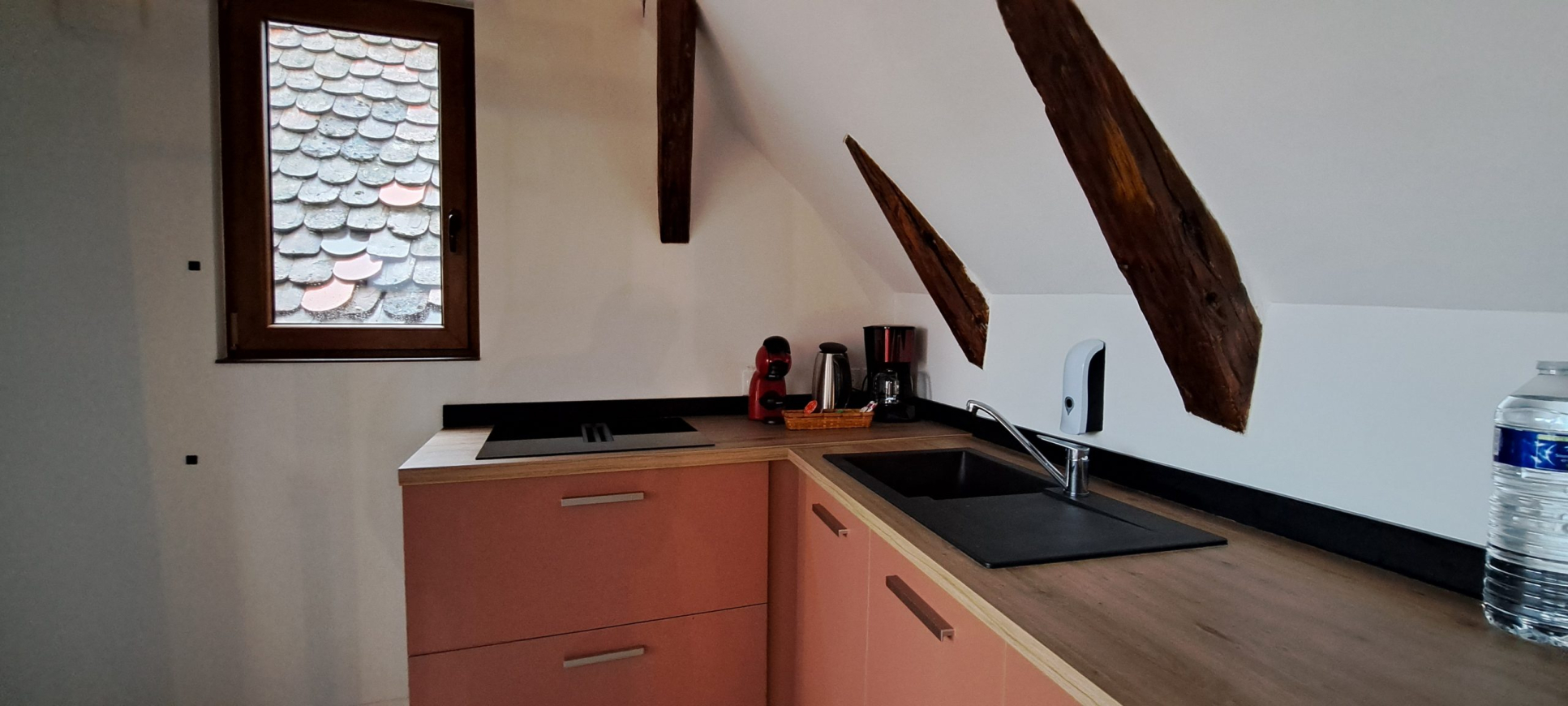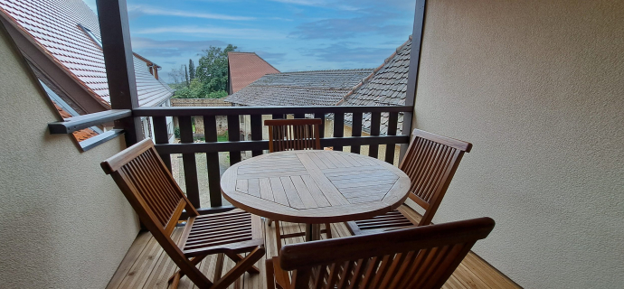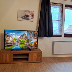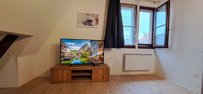 Dit gerenoveerde appartement van 48 m² bevindt zich op de 2ᵉ verdieping van een klein, karakteristiek gebouw en betovert met zijn warme sfeer en zichtbare balken, kenmerkend voor de Elzasser architectuur. Het is volledig uitgerust en biedt alle comfort voor een rustig verblijf van een paar dagen of een week.