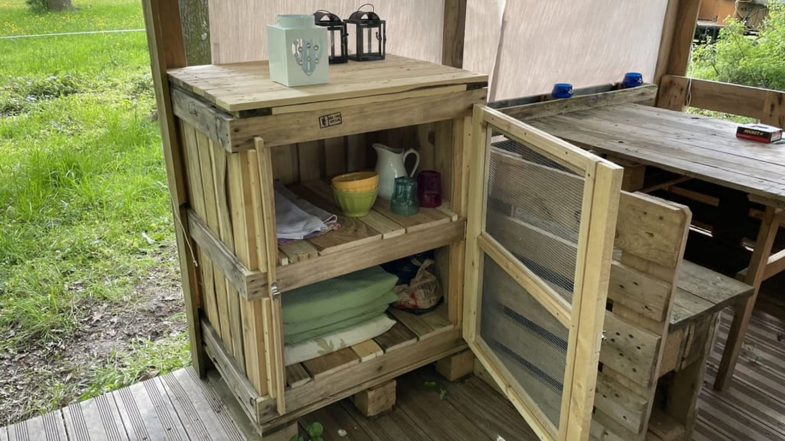 Als optie kan je gastheer je een ontbijtmand brengen als je wakker wordt. Er staat een houten eethoek voor je klaar, met vers bereide lokale producten op het menu.