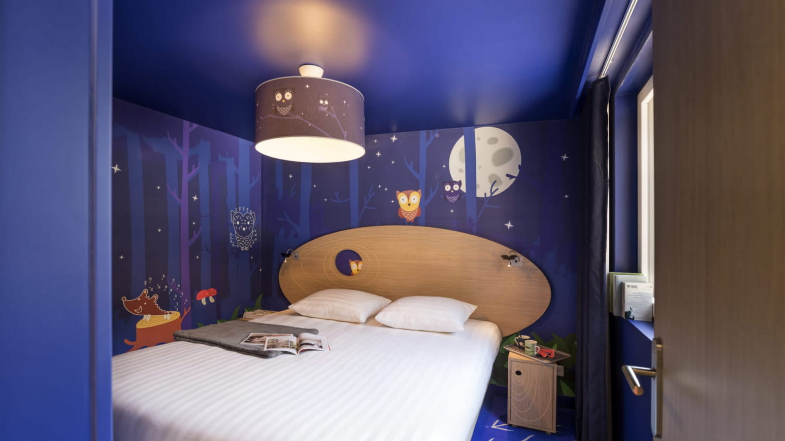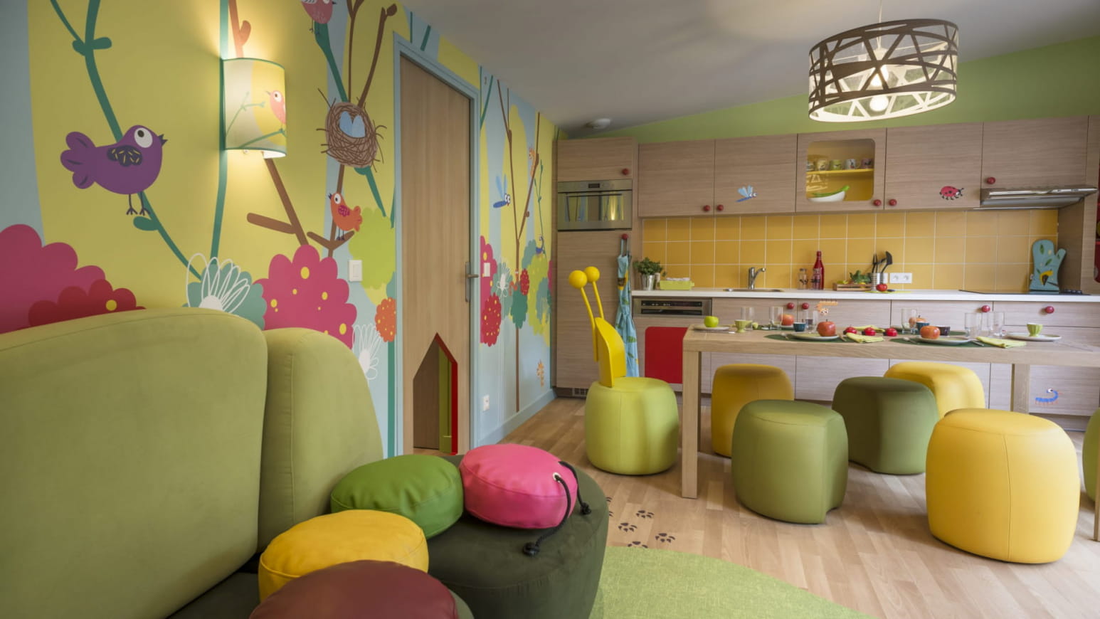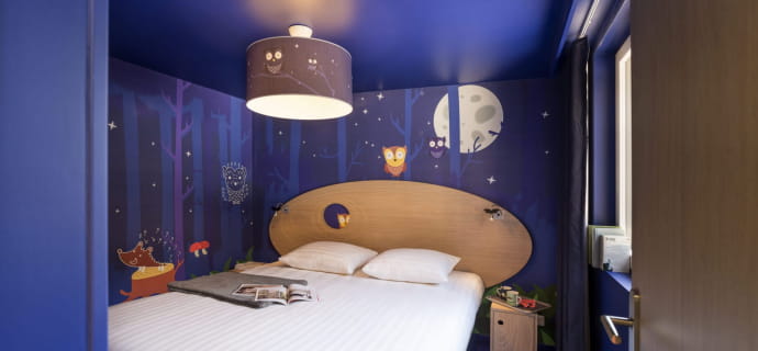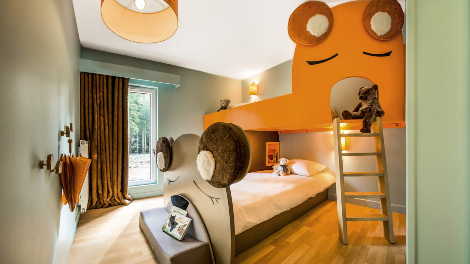 Zodra je over de drempel stapt, word je verwelkomd in een warme wereld, zorgvuldig ingericht rond de dieren van het bos: ondeugende uilen, majestueuze herten, nieuwsgierige vossen… Elke kamer vertelt een verhaal, met zachte illustraties, natuurlijke materialen en meubilair aangepast aan de jongste gasten. De cottage heeft een aantal comfortabele bedden, een functionele keuken en een eigen buitenruimte om optimaal te genieten van de bosrijke omgeving.