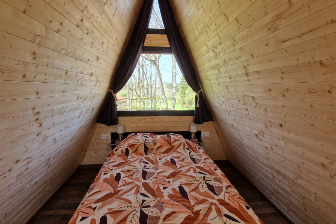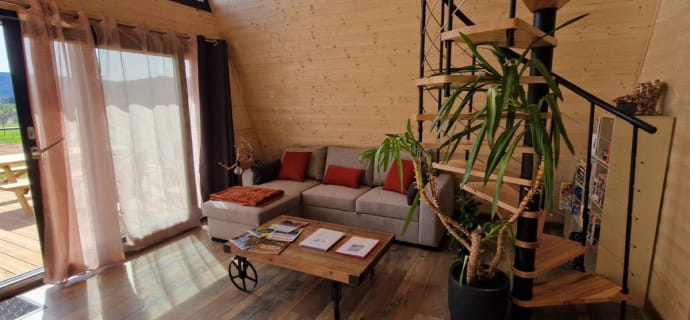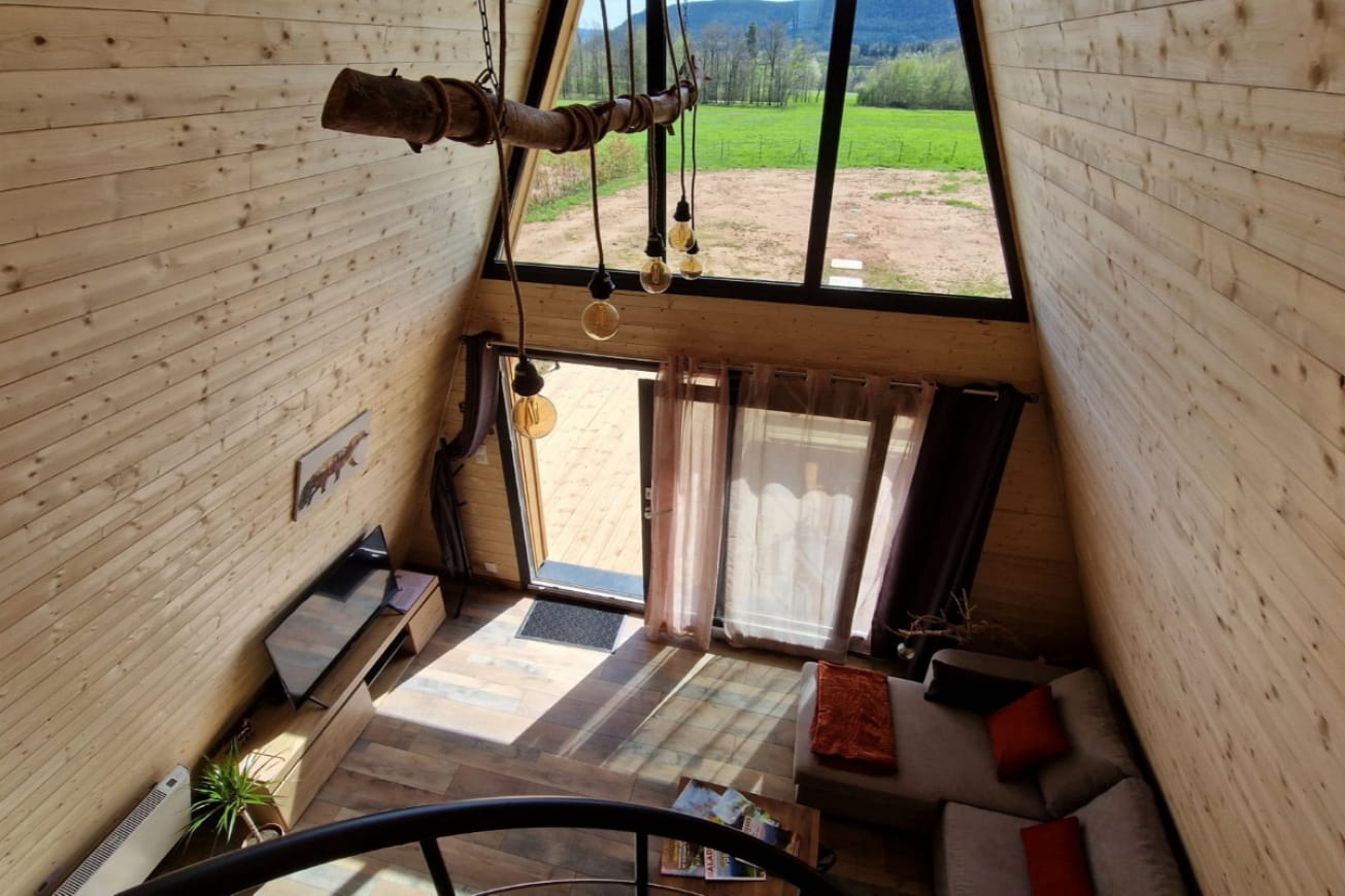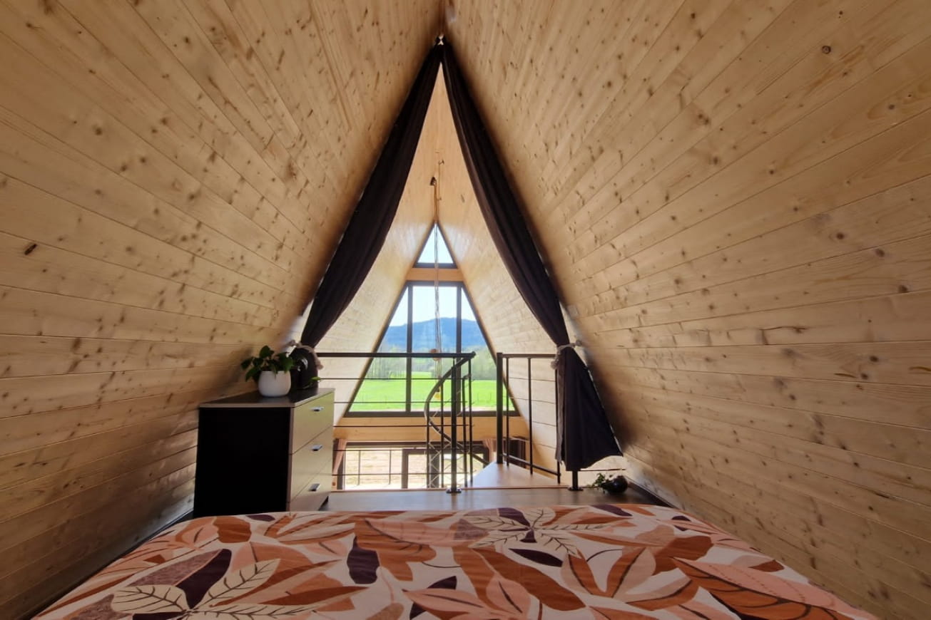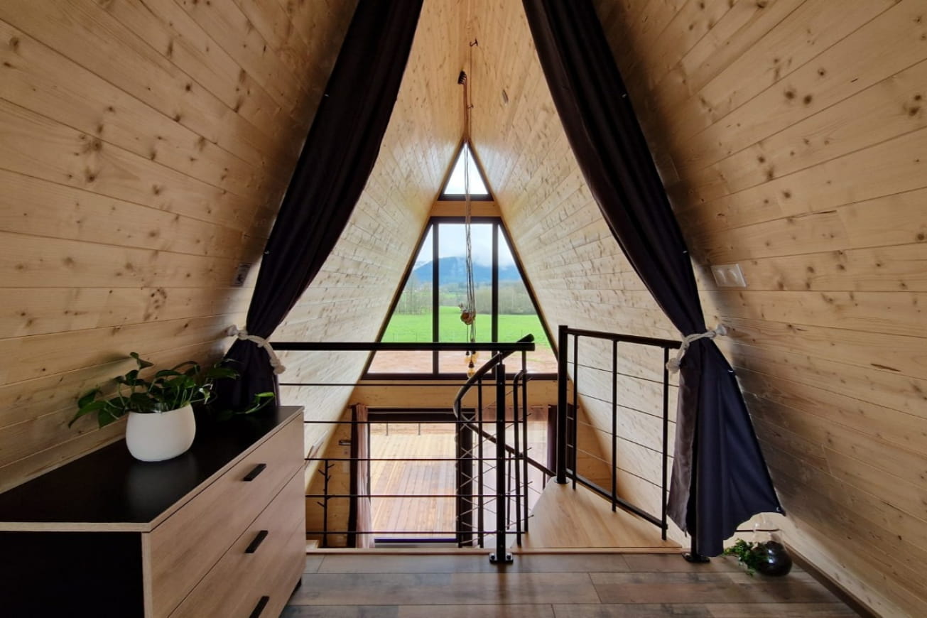 Kom met je gezin, met z’n tweeën of alleen logeren in dit prachtige A-frame chalet in een rustige, ontspannen omgeving. Deze unieke en atypische accommodatie, met zijn ongewone architectuur, nodigt je uit om te ontspannen. Geniet van de zonsopgang en zonsondergang over de bergen vanaf je terras of vanuit je bed in de panoramische slaapkamer boven.