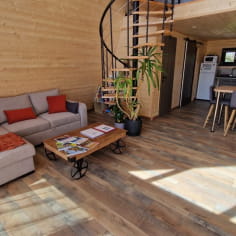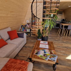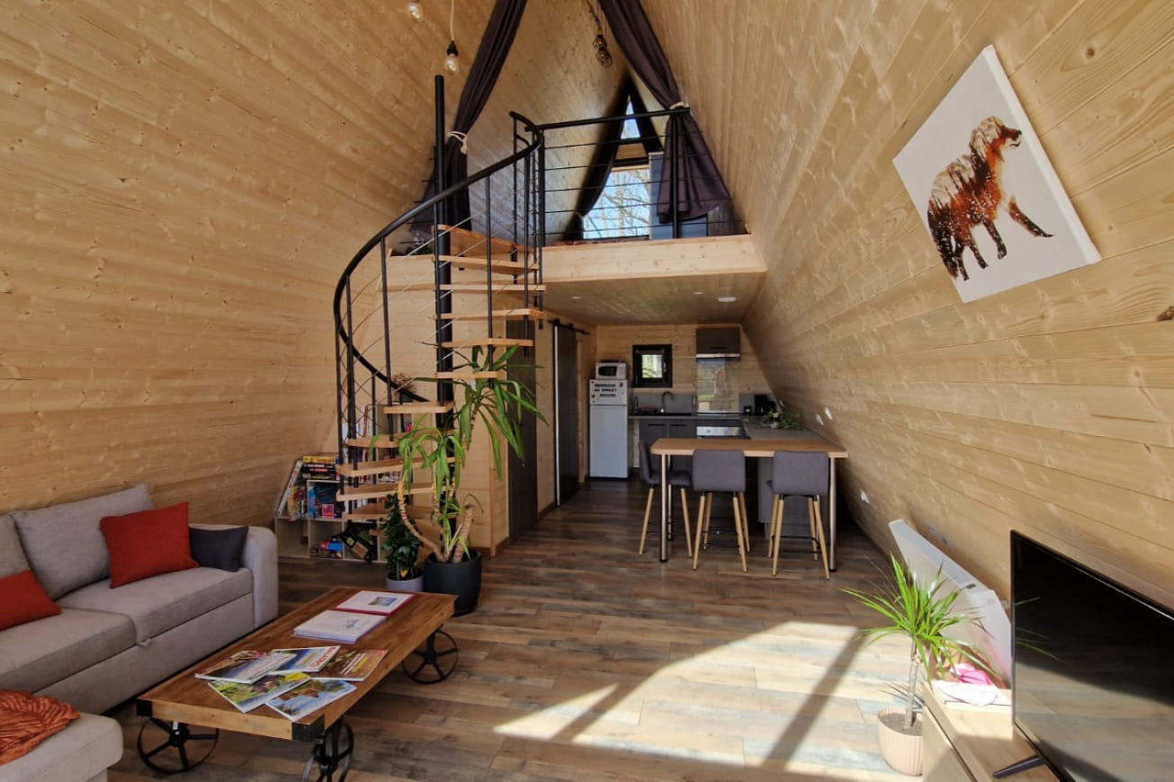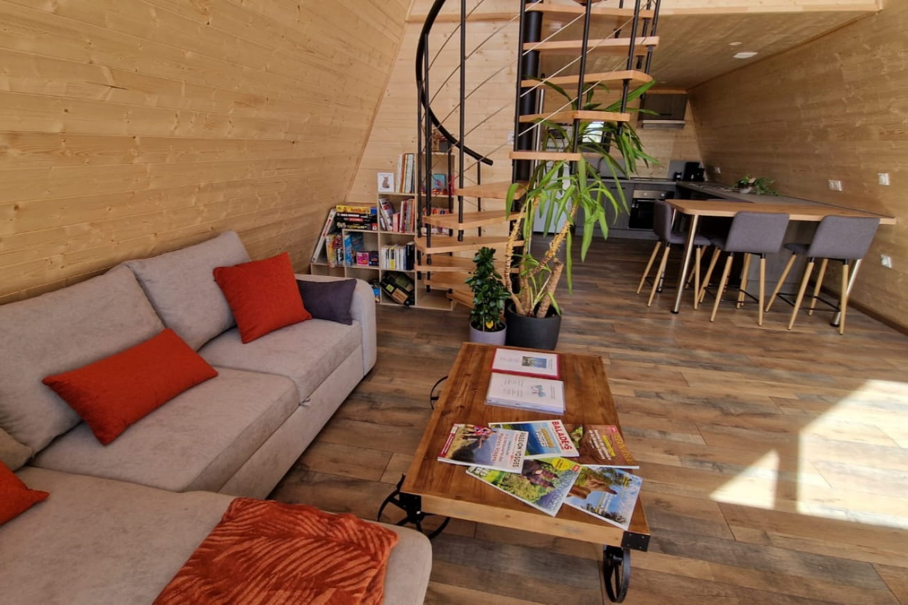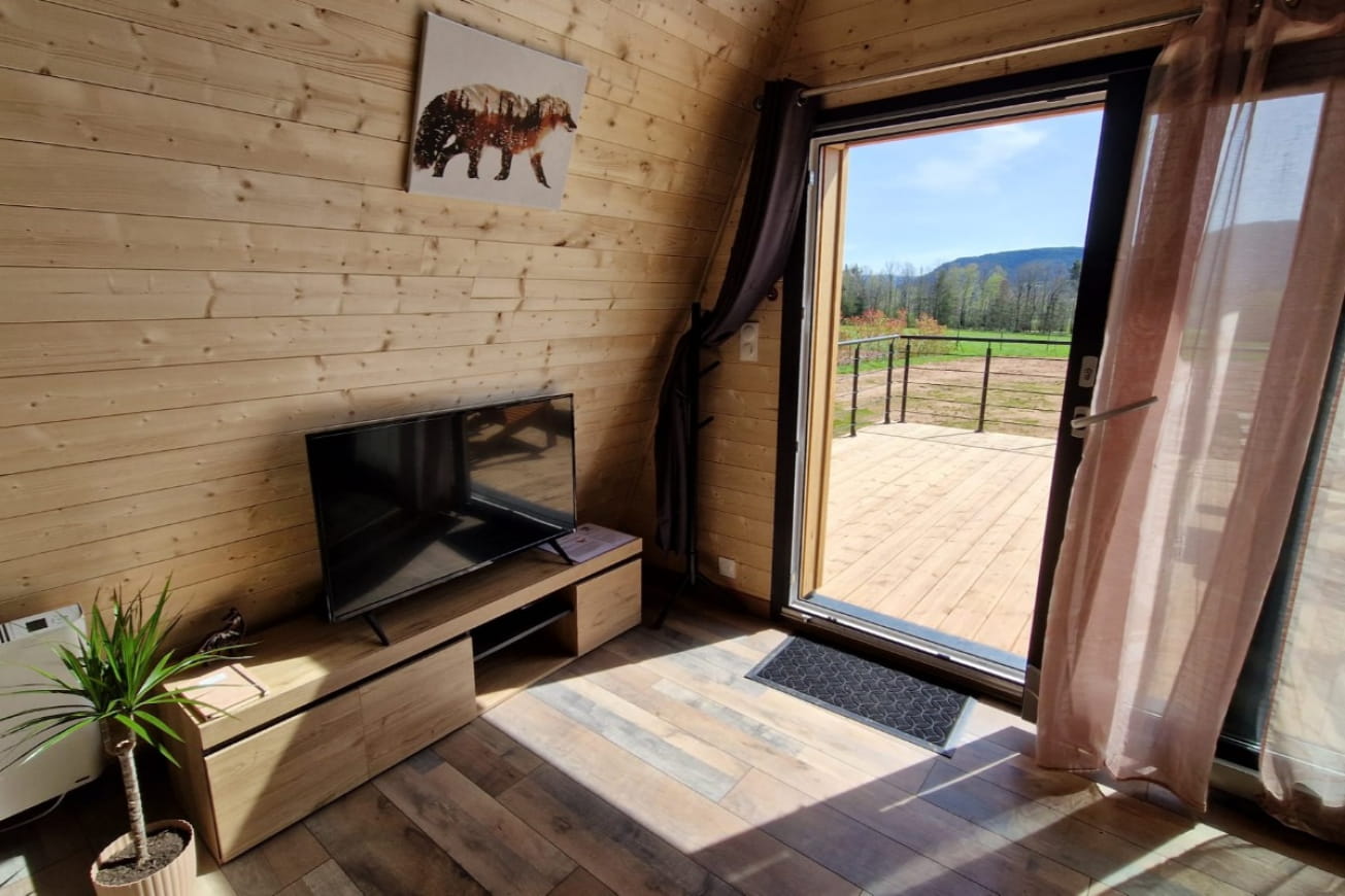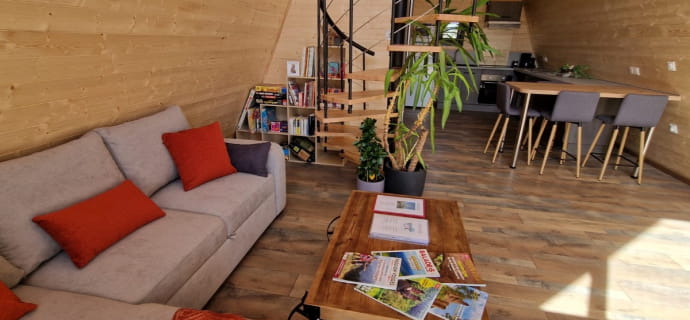 Kom met je gezin, met z’n tweeën of alleen logeren in dit prachtige A-frame chalet in een rustige, ontspannen omgeving. Deze unieke en atypische accommodatie, met zijn ongewone architectuur, nodigt je uit om te ontspannen. Geniet van de zonsopgang en zonsondergang over de bergen vanaf je terras of vanuit je bed in de panoramische slaapkamer boven.
