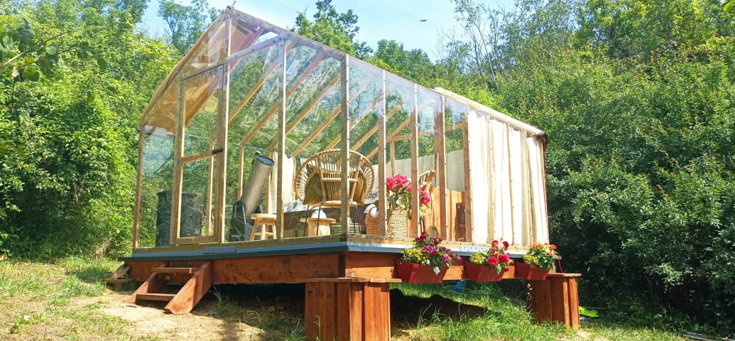 - Een ongewoon verblijf in een houten kas in het hart van het platteland van Pagnotine