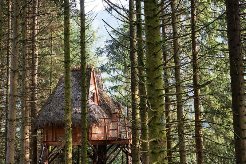 - Een hoog terras dat privacy en een gedetailleerd uitzicht op het bos biedt