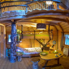 Wil je verblijven in een vogelnest? Breng je vakantie door hoog in de bomen, gesust door het ruisen van de wind in de takken, en kijk uit over een prachtig panorama... Als deze reis naar het hart van de natuur je aanspreekt, boek dan een verblijf in de hut "Le Murmure du Printemps" bij Bol d'Air. Midden tussen de dennenbomen is dit de ideale plek voor een intiem uitje met vrienden of familie.