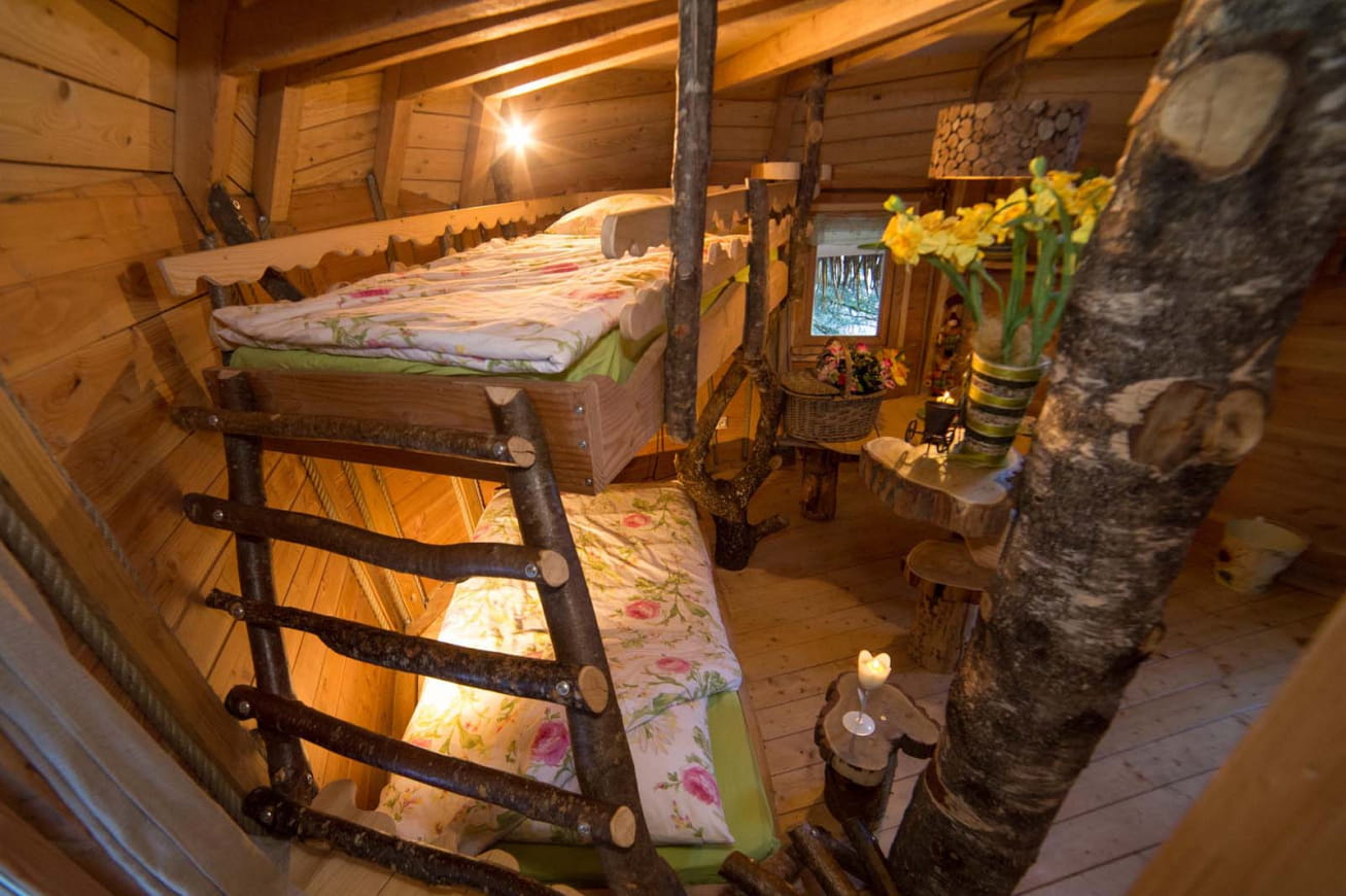 Bovenaan een wenteltrap open je de deuren van deze rustieke hut in het hart van het Vogezische bos. Deze accommodatie ligt 7 m boven de grond en is als een gezellig nest. Er zijn 1 tweepersoonsbed en 2 eenpersoonsbedden voor een comfortabele nachtrust. Je geniet ook van de diensten van een hotel, met alle faciliteiten die je nodig hebt voor je verblijf.