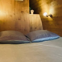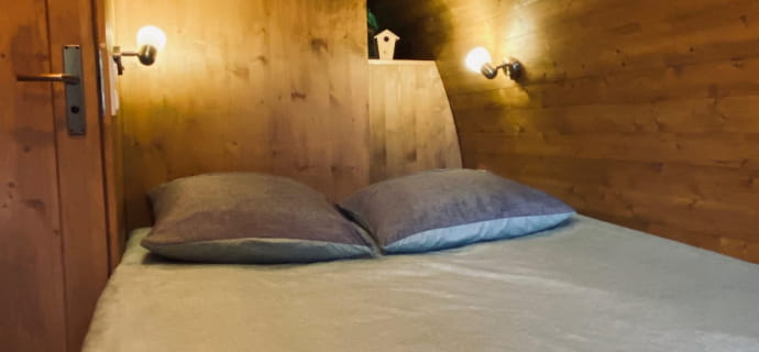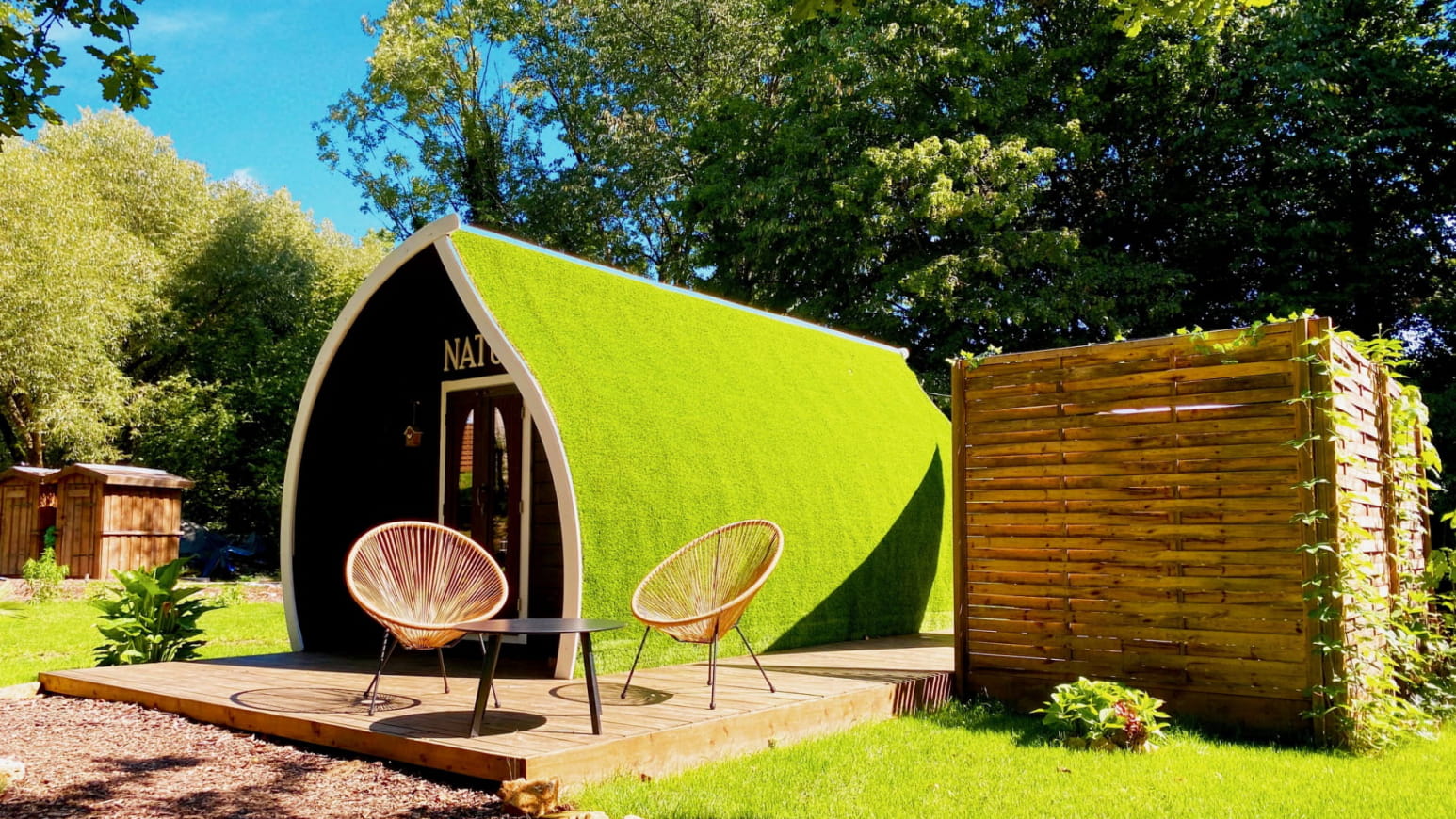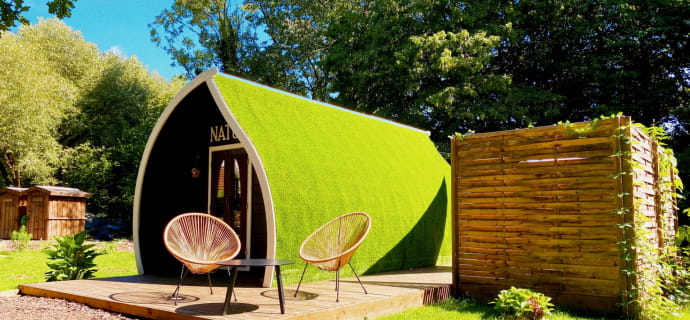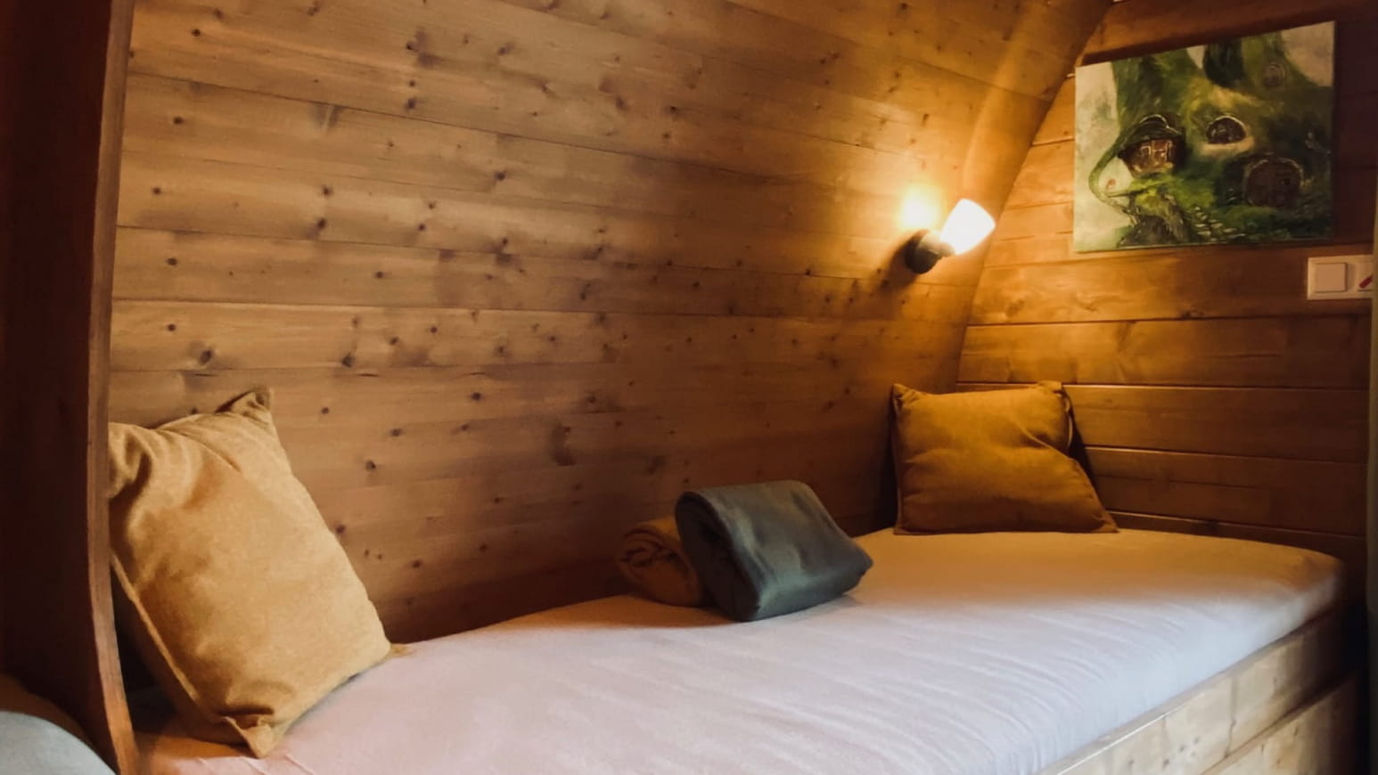 De Lodge Nature zal je ook overtuigen met zijn originele druppelvorm. De leefruimte van 19 m² heeft alle voorzieningen die je nodig hebt voor echt comfort. Je vindt er een kitchenette, een badkamer met douche en twee eenpersoons- en tweepersoonsbedden voor drie personen. Je zult ook de schone, opgeruimde inrichting van deze unieke ruimte waarderen.