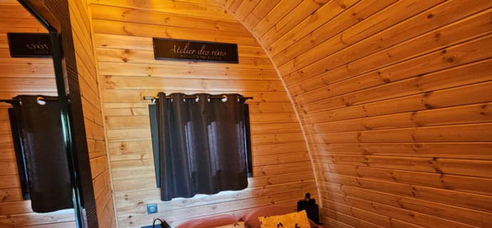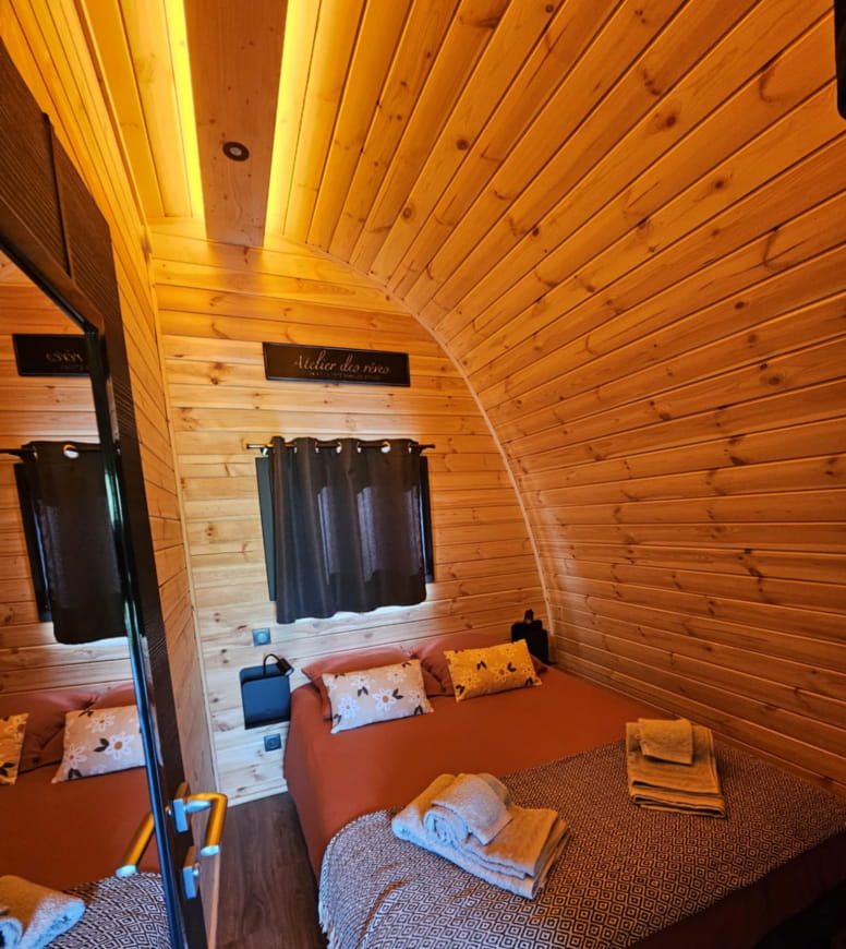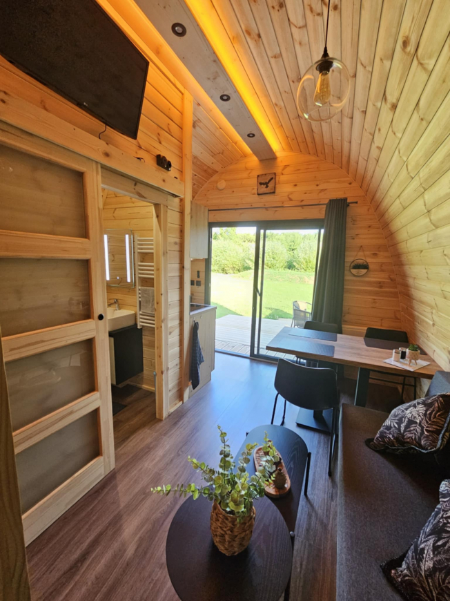 Ons doel is om een plek te creëren waar mensen komen om nieuwe energie op te doen, de tijd te nemen en een leuke tijd te hebben. Wij bieden ongewone, rustige en ontspannende accommodatie. Of je nu op zoek bent naar een romantisch uitje, een plek om tot rust te komen of een plek om te delen met je familie, onze accommodatie biedt een warme en comfortabele cocon in het hart van het platteland. Een Finse Kota (2 pers.) met Scandinavisch bad Een Pod Charme (2 pers.) Een Pod Élan (3 pers.) binnenkort met een eigen spa en een Double Pod (4 pers.) ideaal voor gezinnen. Elke Pod is uitgerust met een keuken, badkamer, verwarming en een mooi terras.