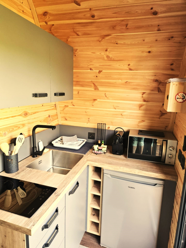 - Accommodatie in Pod Élan (tot 3 personen) met kitchenette, woonkamer, tv, WiFi, eigen doucheruimte en verwarming.