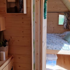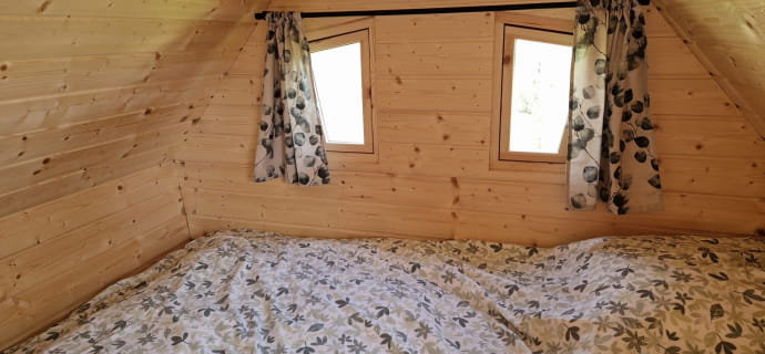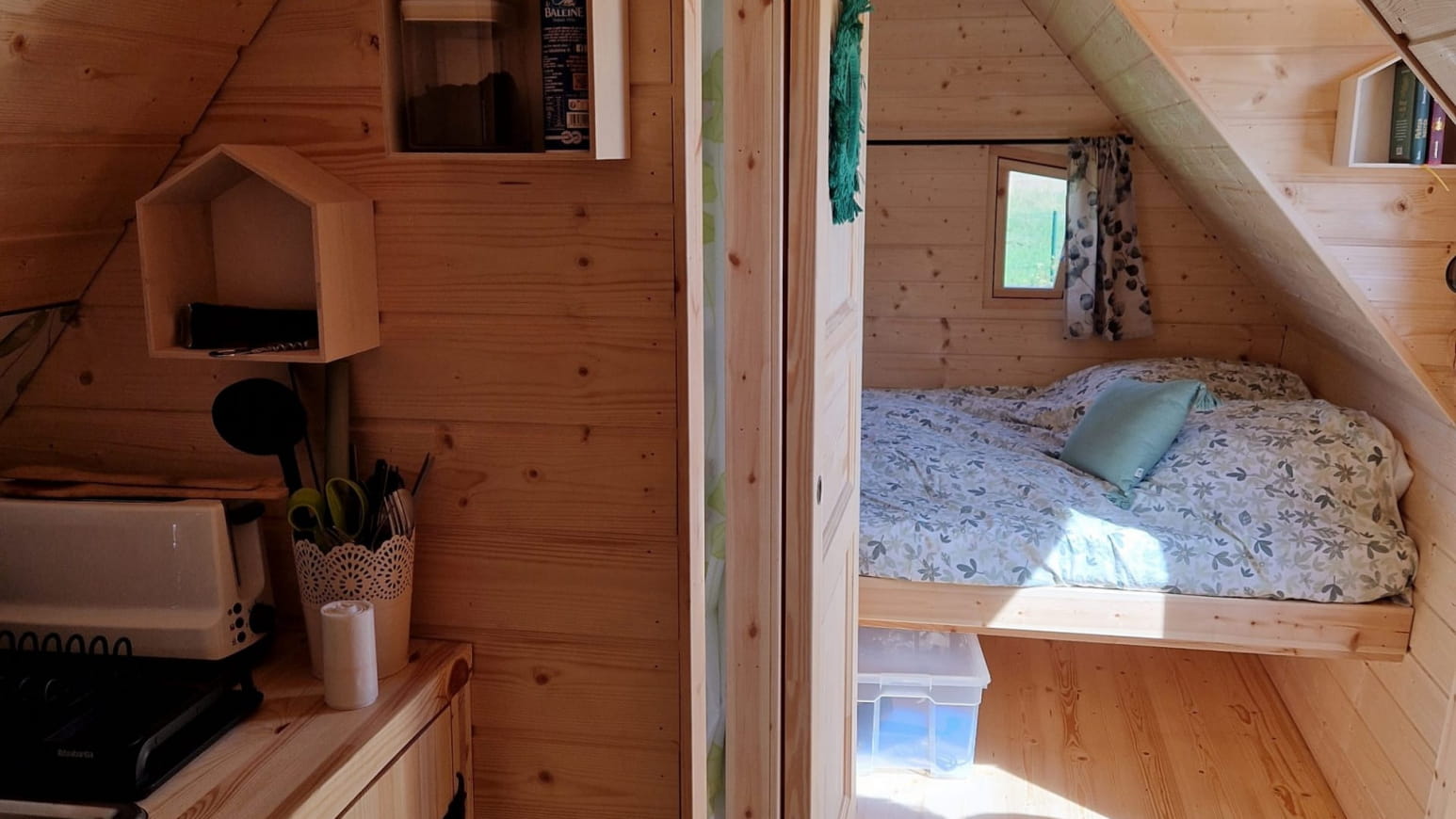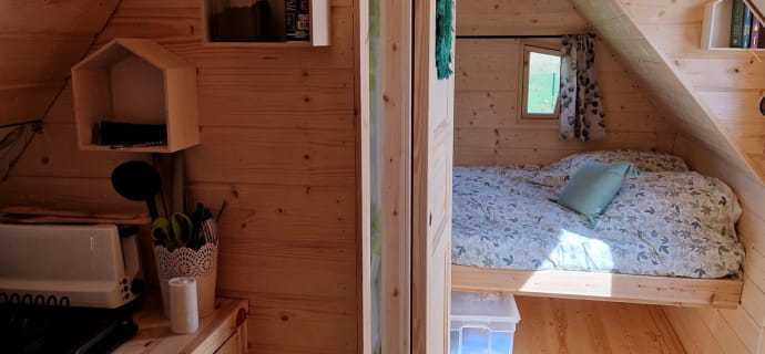Stel je een mooie verhoogde hut voor in een klein hoekje van de natuur, bereikbaar via 3 treden. In deze gezellige ruimte heeft de Fée de la Forêt alles voorzien wat je nodig hebt voor een comfortabel verblijf. De hut heeft twee bedden, een van 140×190 en een eenpersoonsbed. Er is ook een eethoek voor 3 personen met krukjes, een keuken, een doucheruimte (toilet en douche) en een tv.