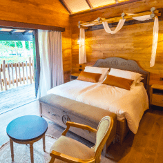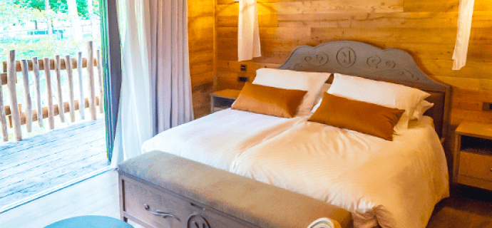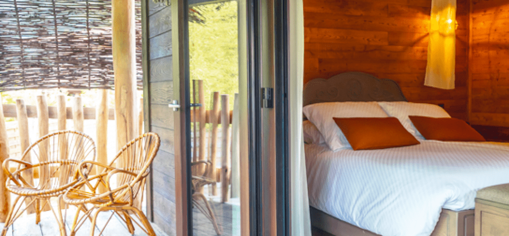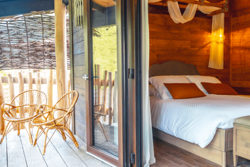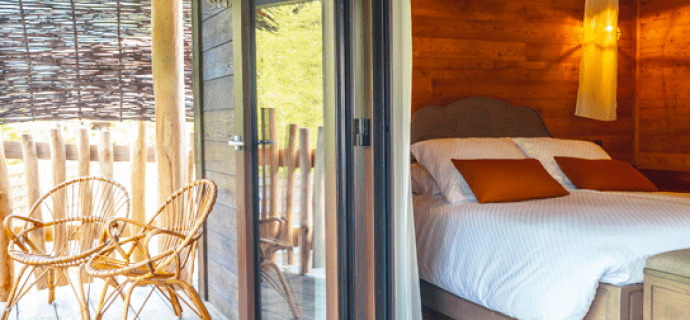 Elke hut is ontworpen om optimaal comfort en een unieke ervaring te bieden. Er zijn twee grote, ruime slaapkamers, perfect voor gezinnen, en een moderne, elegant uitgeruste badkamer. Het pronkstuk is ongetwijfeld het privéterras, waar je kunt ontspannen terwijl je het uitzicht op het omliggende platteland bewondert.