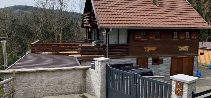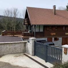 Verhuur van een gezellig chalet in het midden van het gebergte van 120m2, met 4-sterrencomfort en panoramisch uitzicht op de Vogezen, een groot terras, een Fins bad, een sauna, een grote woonkamer, een binnenplaats om je auto te parkeren en grote groene buitenruimtes. Veel wandelingen en uitstapjes in de buurt. Viervoetige metgezellen zijn welkom en kunnen genieten van een groot, veilig, omheind terrein. Welzijnsbehandelingen zijn beschikbaar tegen betaling.