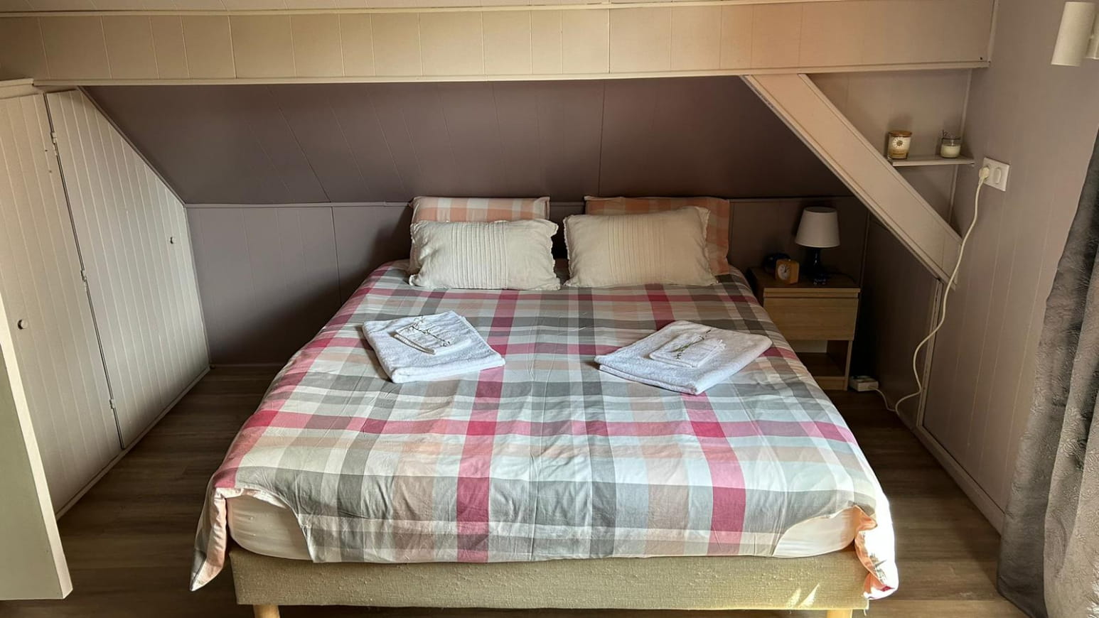 Een slaapkamer met tweepersoonsbed en een slaapkamer met 2 eenpersoonsbedden wachten op je op de 2e verdieping.