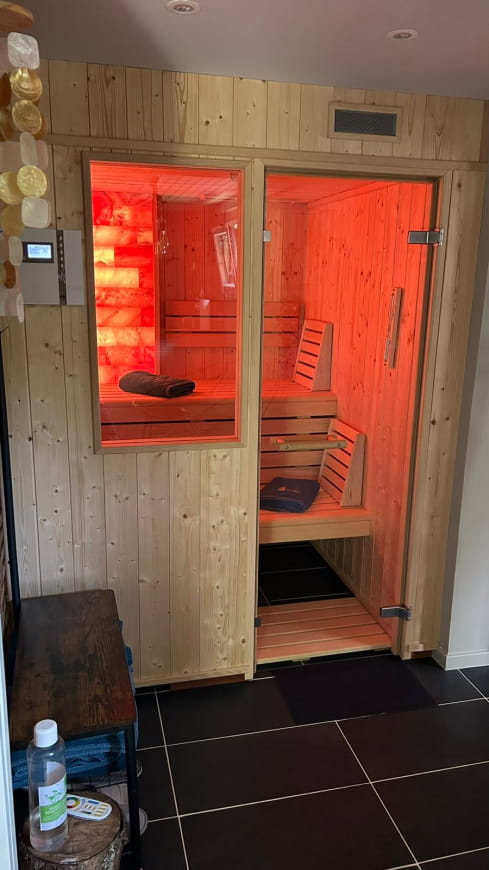 De gîte is verdeeld in 2 verschillende delen. Zodra je de begane grond betreedt, word je verleid door de 2 aparte ruimtes, waaronder een wasruimte, een woonkamer met een houtkachel, die een warme sfeer biedt, en een volledig uitgeruste kitchenette. Ontspan na een dag verkennen in de zithoek of maak gebruik van de privésauna, voordat je uitrust in de grote tweepersoonsslaapkamer.