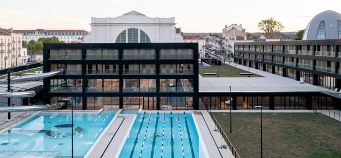 Nancy Thermal, gelegen in het hart van de Franse regio Grand Est, in Meurthe-et-Moselle, is een uitzonderlijke plek die bestaat uit vier verschillende gebieden: een gezondheidscentrum, een thermale spa, een aqualudisch en sportcentrum en een hotelresidentie, Villa Thermae. Deze verschillende zones zijn gecentreerd rond het beroemde ronde zwembad, het historische symbool van de voormalige thermen, dat een complete ervaring van ontspanning, welzijn en revitalisatie biedt.