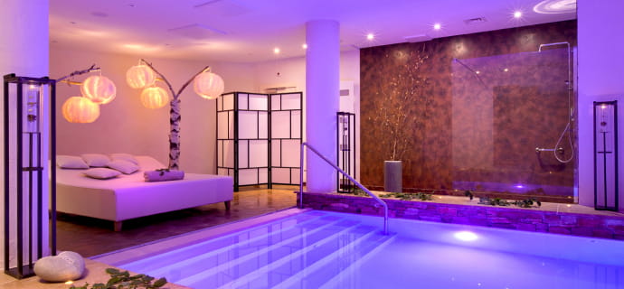 - Een persoonlijk spa-mandje met handdoeken, badjassen en slippers.