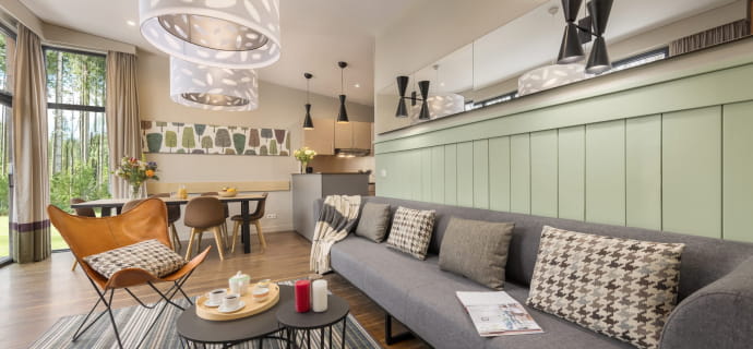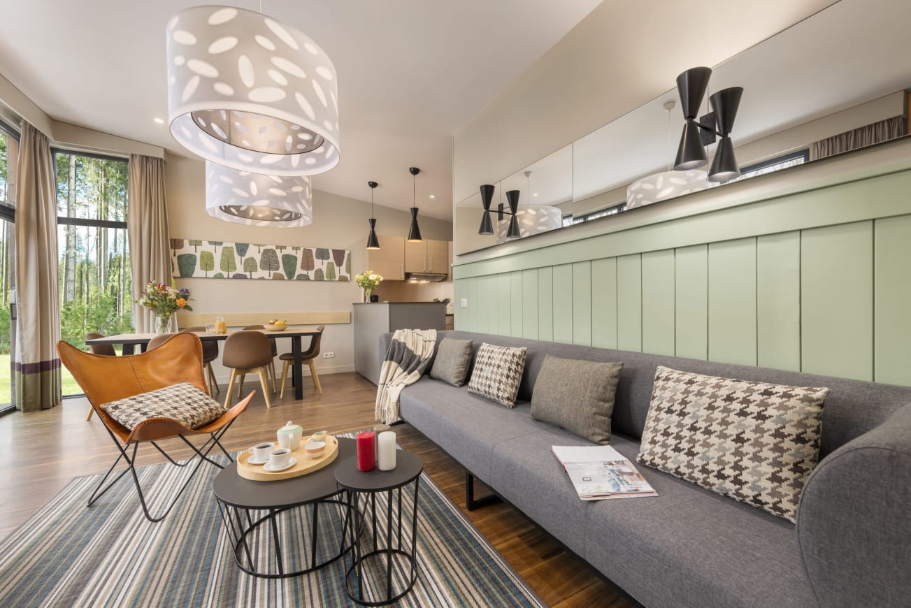 Met zijn 1.095 houten cottages omringd door naaldbomen, een breed scala aan restaurants (5 restaurants & 4 bars), een verscheidenheid aan binnen- en buitenactiviteiten (Aqua Mundo, accrobranche, paintball, kanoën, waterfietsen, boogschieten, diverse evenementen, enz.) en flexibele vergaderruimtes, biedt de locatie een uitzonderlijke omgeving voor een ontspannend verblijf met familie of vrienden, of als onderdeel van een bedrijfsseminar.