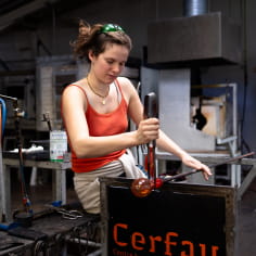 De Cerfav galerie en werkplaats in Vannes-le-Châtel: een cultureel en artistiek trefpunt dat u niet mag missen! Experimenteren met glas, toegankelijk voor iedereen! De Cerfav galerie en werkplaats (Centre Européen de Recherches et de Formation aux Arts verriers - Europees Centrum voor Onderzoek en Opleiding in de Glasblazerij) ligt op 40 minuten van Nancy, in het bos van Meine, in het zuiden van de regio toulois. Demonstraties, tentoonstellingen, winkel, snackbar Op reservering, probeer zelf glas te blazen!