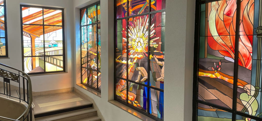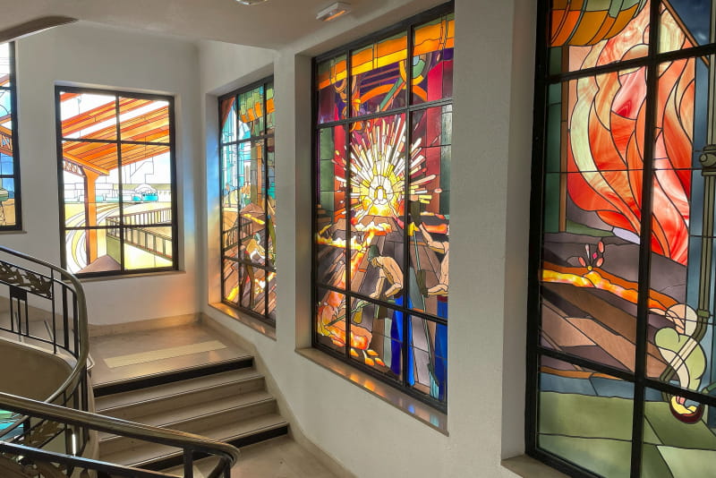 De tweede dag is gewijd aan de industriële geschiedenis van Longwy, een andere pijler van de identiteit van de stad. Ontdek ‘s ochtends de voormalige kantoren van de staalfabriek, overblijfselen uit het tijdperk van de staalproductie. Deze majestueuze gebouwen herbergen een schat van grote schoonheid: de Majorelle glas-in-loodramen. Deze uitzonderlijke glas-in-loodramen, ook wel de « kathedraal van het licht » genoemd, getuigen van de industriële bloeiperiode van Longwy.