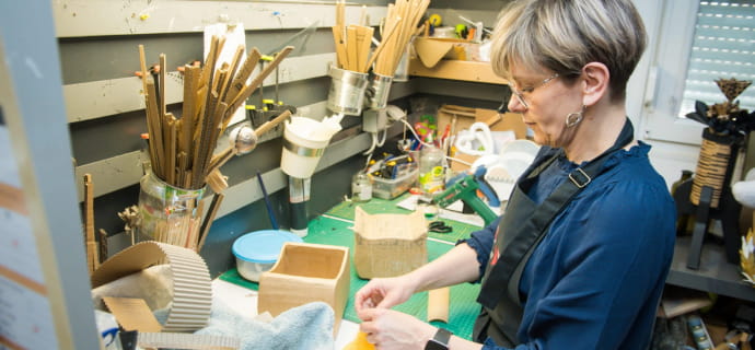 Weet jij wat een kartonmaker doet? Kom en ontdek de kunst van het recyclen van karton met Emmanuelle, een vakvrouw op dit gebied. Geniet van een unieke creatieve ervaring en vertrek met je eigen decoratieve lijst.