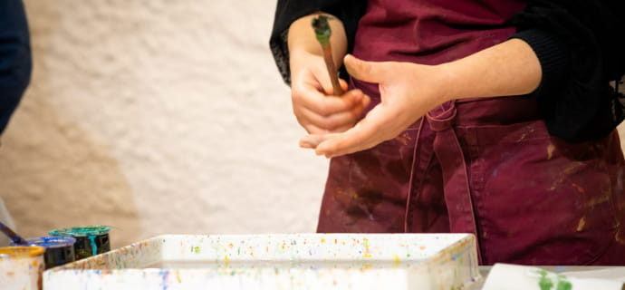 Je krijgt ook de gelegenheid om verf op pigmentbasis te gebruiken die vers in de workshop wordt bereid. Deze workshop is niet alleen een creatieve activiteit, maar ook een onderdompeling in het ambacht die je creativiteit zeker zal aanwakkeren.