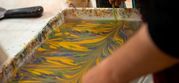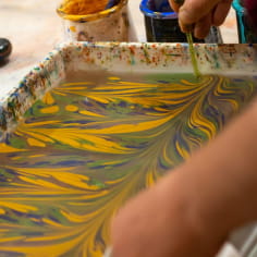 De workshop begint met een introductie over hoe dit papier door de eeuwen heen is gebruikt en hoe het wordt gemaakt. Daarna ga je zelf aan de slag: Zeynep begeleidt je stap voor stap bij het maken van je eigen vellen gemarmerd papier. Je experimenteert met verschillende patronen, van traditionele ontwerpen tot meer eigentijdse creaties, met behulp van het gereedschap van de meester-marbeldrukker.