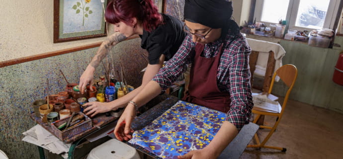 Neem deel aan een unieke workshop gemarmerd papier met Zeynep Usyal. Een halve dag lang neemt Zeynep je mee in de boeiende geschiedenis van gemarmerd papier, van de oorsprong tot het gebruik ervan in creatieve werken en technieken. Het is de perfecte gelegenheid voor nieuwsgierigen en creatievelingen om deze kunstvorm te ontdekken!