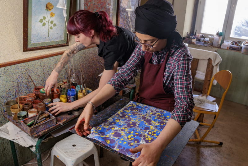 Ontdekking in een halve dag van de voorouderlijke technieken voor het maken van ebru en gemarmerd papier