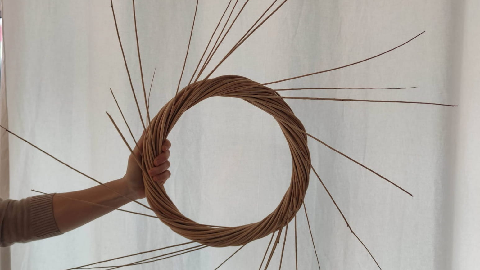 Het maken van gebruiks- of siervoorwerpen van vlechtwerk, land-art, overdracht.