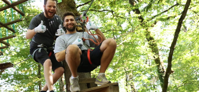 Het accrobranche park is onbeperkt toegankelijk en kan worden gecombineerd met andere activiteiten op de grond. Schattenjacht, Archery Tag, Lasergame Outdoor of Maxi Bungee.