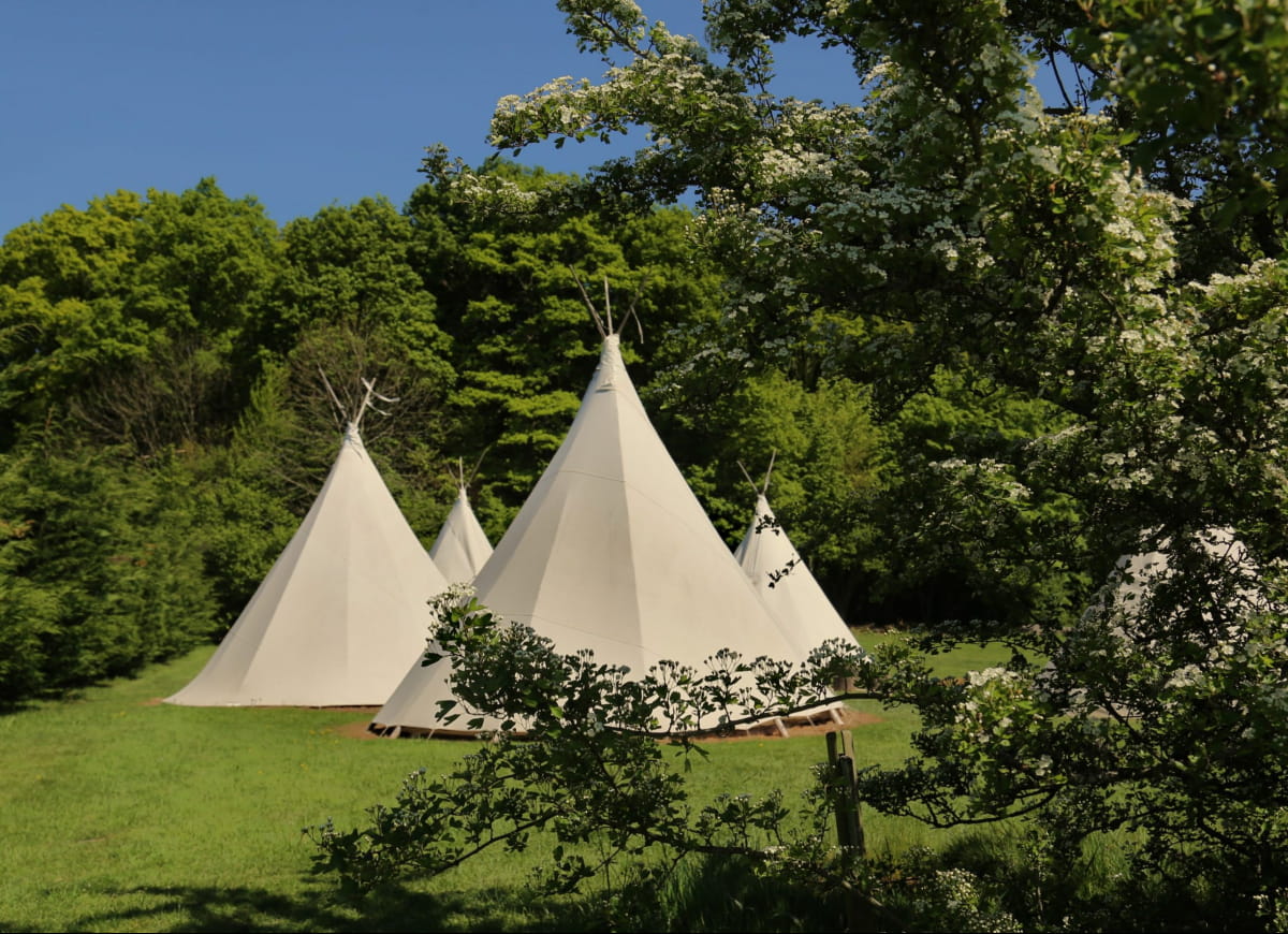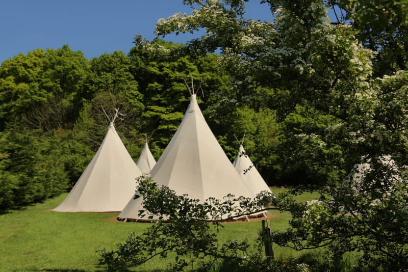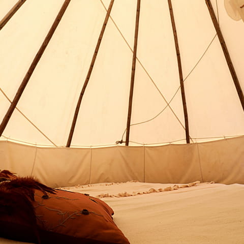 - Een grote ruimte voor meerdere tipi's, elk met een eigen intieme sfeer