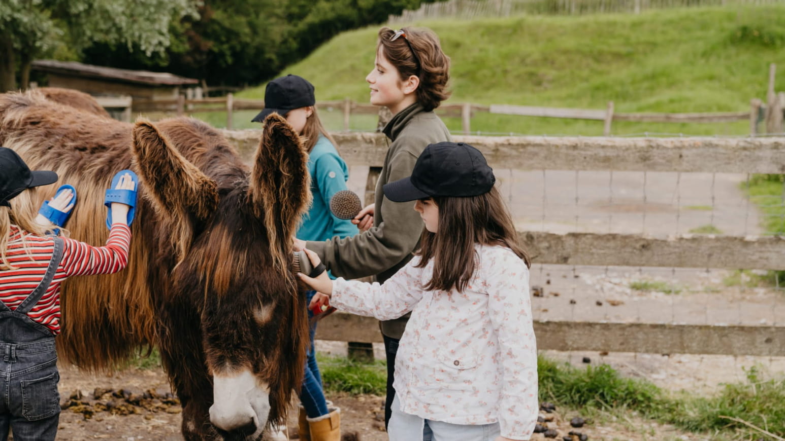 Onder begeleiding van een dierenverzorger zullen de kleine boeren deelnemen en het leven op de boerderij ontdekken: de ezels borstelen, eieren van de kippen rapen, de konijnen, varkens en geiten voeren en hun omgeving schoonmaken.