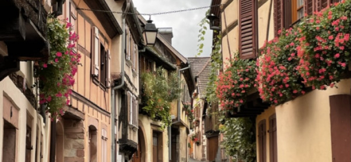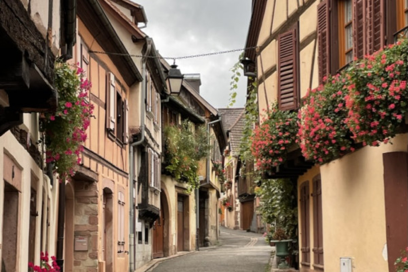 Je tocht voert je door schilderachtige straatjes met vakwerkhuizen, levendige pleinen, historische fonteinen en naar de verhalen van de kastelen die over de stad uitkijken. Elk hoekje en gaatje verbergt een anekdote, elke gevel een verhaal. Je hoort ook de plaatselijke legende van de kouglof, het emblematische gebak waar Ribeauvillé trots op is.