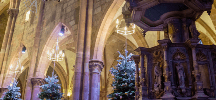 Maar Sélestat is ook een stad van volkstradities: de heksentoren, de broederschappen, de legendes van de gevreesde Hans Trapp, en vooral de allereerste schriftelijke vermelding van een kerstboom, gedateerd 1521 en hier bewaard in het gemeentearchief.