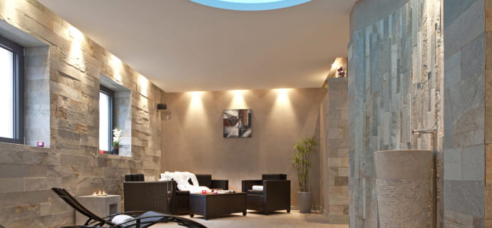 - Ontspanningsruimte met binnenzwembad, jacuzzi, sauna, stoombad en zintuiglijke douches