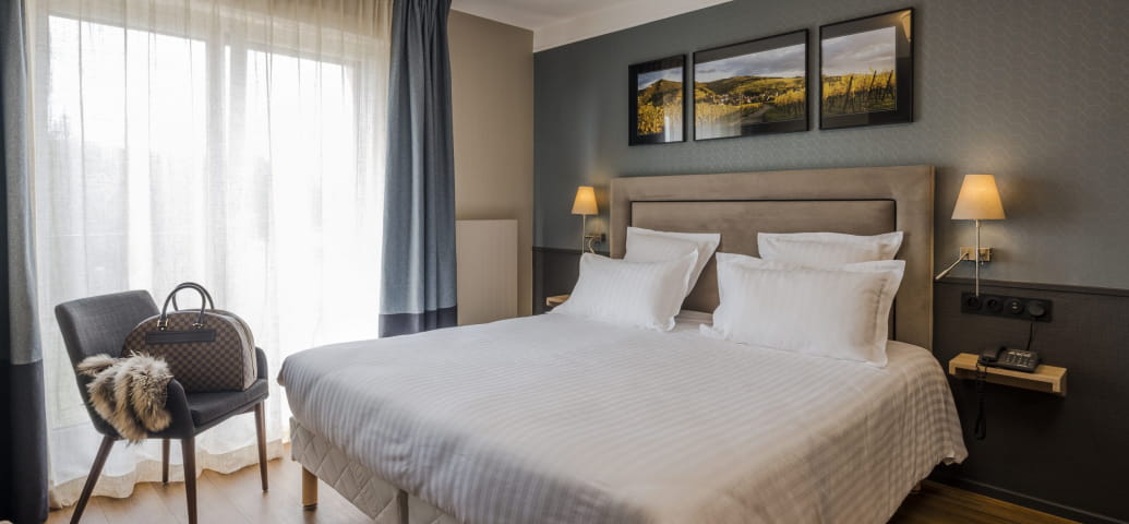In hotel Au Riesling, gelegen in Zellenberg aan de wijnroute van de Elzas, verblijf je in een van onze 36 charmante kamers. Van alle gemakken voorzien, geniet je van de omringende rust en een ontspannend uitzicht op de wijngaarden van de Elzas. Neem plaats aan tafel in ons restaurant met airconditioning, met een 180° panoramisch uitzicht op de wijngaarden van de Elzas, de Vogezen en het Zwarte Woud in de verte. Je geniet er van een innovatieve, creatieve en verfijnde keuken in een gezellige sfeer. Chef-kok Alexandre Lesser en zijn team heten u van harte welkom.