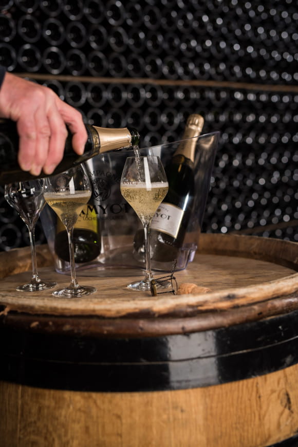 Laat u onderdompelen in de sprankelende wereld van de champagne in Maison Champagne Amyot, gelegen aan de Côte des Bar, in het mooie dorpje Loches-sur-Ource, waar dit familiale champagnehuis zijn passie voor wijn in al zijn authenticiteit met u zal delen. Er staat u een meeslepend bezoek aan de kelder te wachten, dat zal worden afgerond met een zintuiglijke ontdekking van de aroma's van de Amyot champagnes.