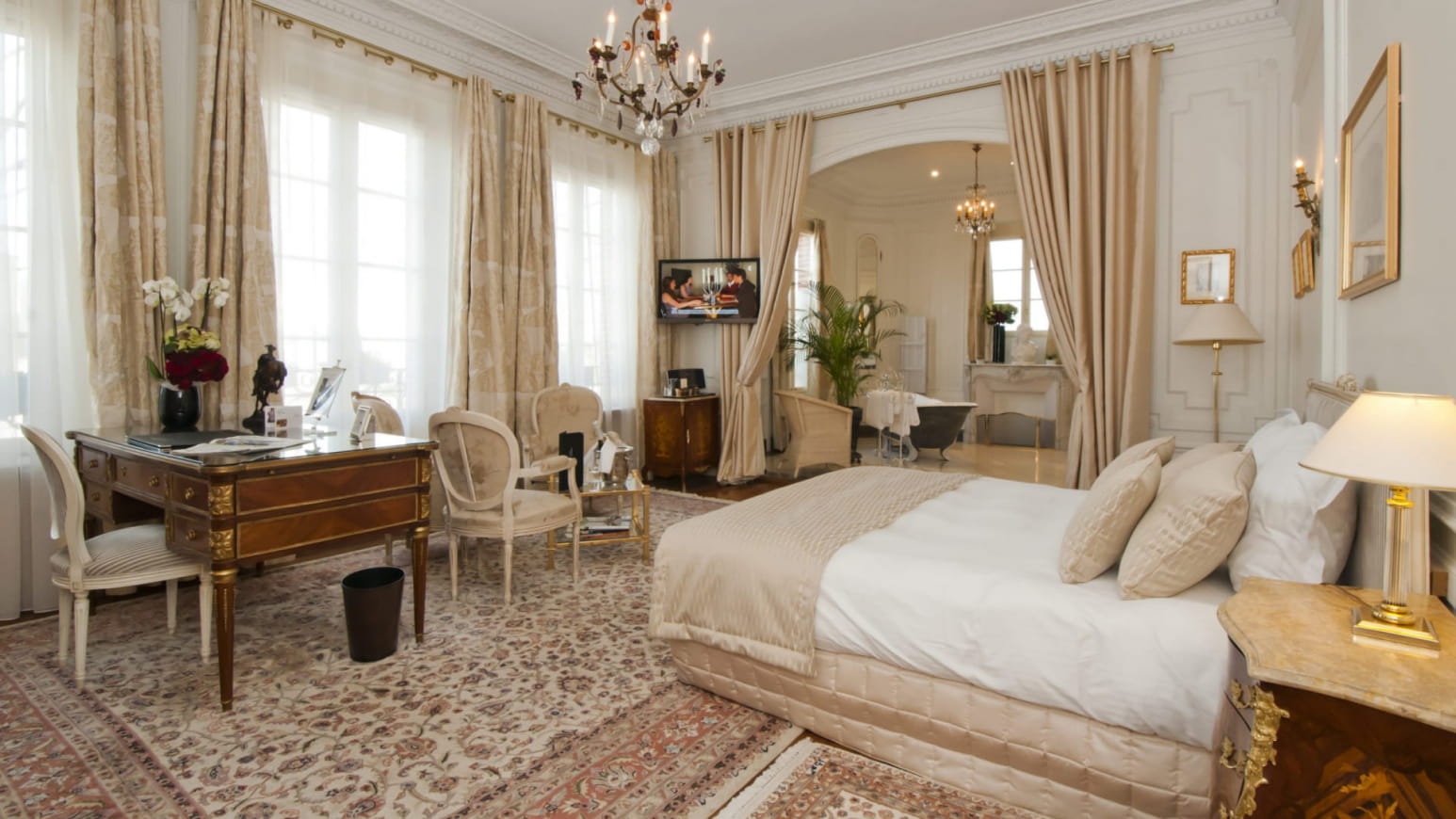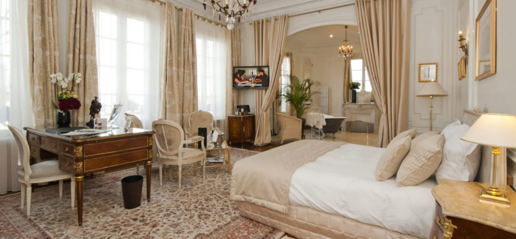Hôtel La Villa Eugène is een prachtige, majestueuze residentie gebouwd in de 19e eeuw en ooit eigendom van de familie Mercier. Gelegen aan de Avenue de Champagne, in het hart van Epernay, aan de poort van de beroemde Champagne wijngaarden. Vandaag de dag biedt dit luxe hotel in Epernay alle comfort van een eersteklas accommodatie. Met een architectuur en decoratie die de stijl en traditie van een familiehuis met een rijke geschiedenis hebben behouden, biedt het Villa Eugène hotel 15 kamers, waarvan sommige uitkijken op de wonderen van een groot bosrijk park. Ontbijt in onze Orangerie Privé, bewaakte en afgesloten parkeerplaats Verwarmd buitenzwembad Bar open voor iedereen