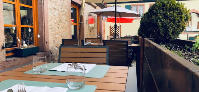 Het restaurant Côté Vigne, bekroond met een Michelinster, is een subtiele mix van traditie en moderniteit. Als je door de deuren stapt, word je ondergedompeld in een sfeer die zowel warm als verfijnd is, en je zult je verbazen over het prachtige uitzicht vanaf het terras. In de keuken zet chef-kok Marie Carrer met haar uitzonderlijke talent de schijnwerpers op lokale Elzasser producten. Hier is elk seizoen een feest van lokale smaken, briljant opnieuw uitgevonden om je bij elke hap te verrassen!