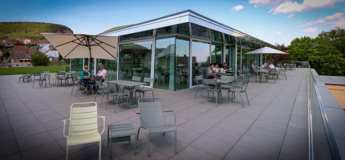 Kom en ontdek onze gloednieuwe kelder en panoramische wijnbar. In een warme en eigentijdse ontvangstruimte kun je door de gangen van onze kelders wandelen en onze wijnen proeven terwijl je van onze schotels met streekproducten proeft. Ons panoramisch proeflokaal biedt een spectaculair uitzicht over de wijngaarden - wat is een betere manier om van een glas Elzaswijn te genieten?