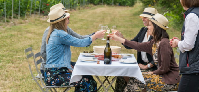 - Een picknick in een unieke omgeving: in de wijngaarden van 50% Chardonnay, 30% Pinot Noir en 20% Meunier.